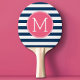 Navy and White Striped Pattern Hot Pink Monogram Ping Pong Paddle