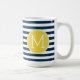 Navy and White Striped Pattern Yellow Monogram Coffee Mug