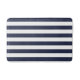 Custom bath mat with a preppy stripe pattern in navy blue and white colours. Use the design tools to choose any background colour, add your own text or upload photos to create a one of a kind design to match any bathroom decor.