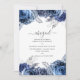 Navy and white flowers birthday invitation with silver faux foil and elegant handwriting typography.