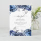 Navy and White with Silver Foil Floral Birthday Invitation