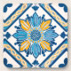Inspired by the traditional Azulejo tiles of Spain and Portugal, this table top beverage coaster features an intricate geometric pattern in breezy navy blue and sunny golden yellow