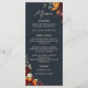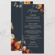 This wedding menu features a deep navy backdrop and vibrant autumnal blooms that exudes elegance and charm. Easily edit the menu items and display this beautiful design on each plate! Plus, it's fully customisable, allowing you to add a personal touch to your special day. Be sure to check out all of the matching wedding items in this collection!