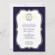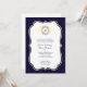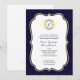 Navy blue and yellow filigree/brocade border wedding invitation featuring a monogram