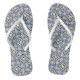Summery and coastal in shades of navy blue, sunny golden yellow and crisp white, our patterned flip flops take their cue from the traditional azulejo tiles of Spain and Portugal. Step out in breezy Mediterranean style with these intricately patterned geometric flip flops!