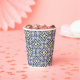 Add Mediterranean charm to your next party or event with these breezy, coastal chic paper cups featuring an intricate geometric pattern that's inspired by the traditional azulejo tiles of Spain and Portugal. Summery colour palette of navy blue, sunny golden yellow and crisp white is a perfect match for outdoor celebrations!