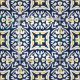 Inspired by the traditional azulejo tiles of Spain and Portugal, this intricately patterned fabric features a geometric design in summery navy blue and sunny golden yellow on a white background. Perfect for Mediterranean style decor, beach houses, and coastal style.