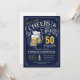 Stylish cheers and beers to 50 years typography design in navy blue, yellow and white, Custom it with your own party information, fun and unique, great for surprise any age adult birthday invitation for men, or anniversary party invitations for any occasion.