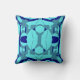 Navy Aqua Slate Abstract Symmetrical Floral Motif Cushion
