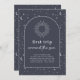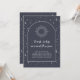 A first Birthday invitation featuring a navy arch background with a star and moon pattern, along with a sun outline and 'first trip around the sun' typography. Perfect for your little one's celestial themed First Birthday party!
