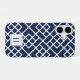 Chic patterned case features a navy blue and white bamboo lattice pattern. Personalise with your single initial monogram for a unique custom touch.