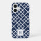Navy Bamboo Lattice Pattern Monogram iPhone 16 Case