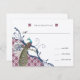 Navy & Berry Berry Elegant Damask Peacock Wedding RSVP Card