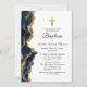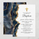 Navy Blue Agate Gold Baptism Modern Elegant Invitation