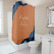 An elegant navy blue watercolor agate design trimmed with faux gold glitter frames a burnt orange or rust background in this luxurious design. Personalise it with the names of the bride and groom in gold-coloured handwriting font on a large, pale burnt orange ampersand, with the wedding date below. Makes a great wedding or housewarming gift for newlyweds!