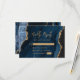 Navy Blue Agate Gold Script Wedding RSVP Card