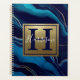 Navy Blue Agate Marble Gold Name and Monogram Planner