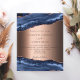 A modern and trendy wedding invitation for the evening. Blue and rose gold agate, marble stone background. Personalise and add your names and the details.