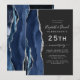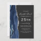 Navy Blue Agate Silver Dark 25th Anniversary Invitation