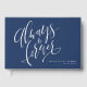 Hand lettered "always and forever" script in white on colour editable navy blue background, customise it with couples names and date, elegant and stylish, great for modern simple wedding.