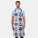 This decorative design features both a dark navy blue anchor and a boat wheel with grey and white stripes. The nautical pattern creates a modern and unique large apron with personalised background colour.