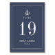 Navy Blue Anchor By The Sea Wedding Table Numbers.