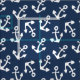 Navy blue anchor fabric by the yard. This lovely anchors material features the classic colour combo of navy blue background and white anchors. Made to be useful in your nautical themed sewing, arts and crafts projects.