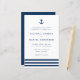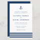Modern and classic wedding invitation, perfect for nautical theme weddings and summer weddings. It features a navy blue anchor illustration, classic typography and a stripes pattern. The texts are fully editable. Personalise by adding names, date, time and other event details.