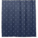 Custom shower curtain featuring a nautical theme with minimalist anchor pattern on dark blue.