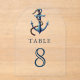 Elegant nautical theme table number card featuring a watercolor painted anchor and rope with modern typography.