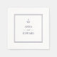 Classic nautical anchor wedding paper napkins with bride and groom names. White with double navy blue border and anchor illustration at top centre, block text in navy blue.