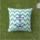 Navy Blue Anchor with Aqua Chevron Pattern Cushion