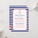 A coral coloured anchor silhouette is on a background of white and navy blue horizontal stripes.