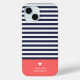 Navy Blue and Coral Chic Stripes Heart Monogram Case-Mate iPhone Case