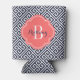Navy Blue and Coral Greek Key Monogram Can Cooler