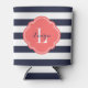 Navy Blue and Coral Preppy Stripes Monogram Can Cooler