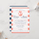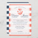 Navy Blue and Coral Stripe Nautical Wedding Invitation