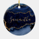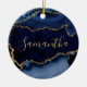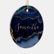 Navy Blue and Faux Gold Glitter Marble Agate Ceramic Ornament