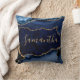 Navy Blue and Faux Gold Glitter Marble Agate Cushion