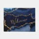 Navy Blue and Faux Gold Glitter Marble Agate Doormat