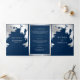 Navy Blue and Faux Silver Foil Palm Leaves Wedding Tri-Fold Invitation