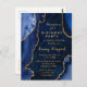 Navy Blue and Gold Agate Marble Birthday Party Postcard