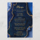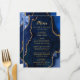 Display your meal selections in style with this elegant wedding menu featuring a navy blue agate marble design accented with gold details. The geode-inspired background creates a sophisticated look, perfect for fall and winter weddings, formal celebrations, or evening events. Designed to coordinate with your wedding stationery suite, this menu is ideal for presenting courses clearly while adding a luxurious touch to your table setting. The clean typography ensures readability while complementing the agate texture. Easily personalise all text to suit your menu and event details, making it a beautiful choice not only for weddings but also for engagement parties, anniversaries, and other formal occasions.