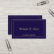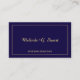 Navy blue and gold modern elegant stylish design featuring name in gold calligraphy font style and information in gold professional font style with gold border.