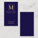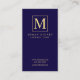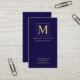 Navy blue and gold elegant stylish design featuring monogram with gold square border and details in gold professional font style.