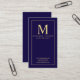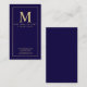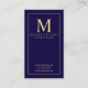 A navy blue and gold modern elegant stylish design featuring monogram, name and contact information in gold professional font style with gold border on navy blue background.