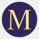 Navy Blue and Gold Elegant Monogram Classic Round Sticker