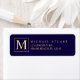 Navy Blue and Gold Elegant Monogram Return Address Label
