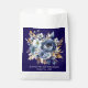 These pretty favour bags match the navy blue and gold wedding invitation suite.