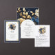 Elevate your wedding decor with this elegant navy blue and gold floral wedding table number card. Featuring sophisticated navy blue and gold floral accents and classic typography, this table number card adds a luxurious touch to your reception tables. Personalise it with the couple's names and wedding date for a beautifully coordinated look that enhances your elegant wedding theme.